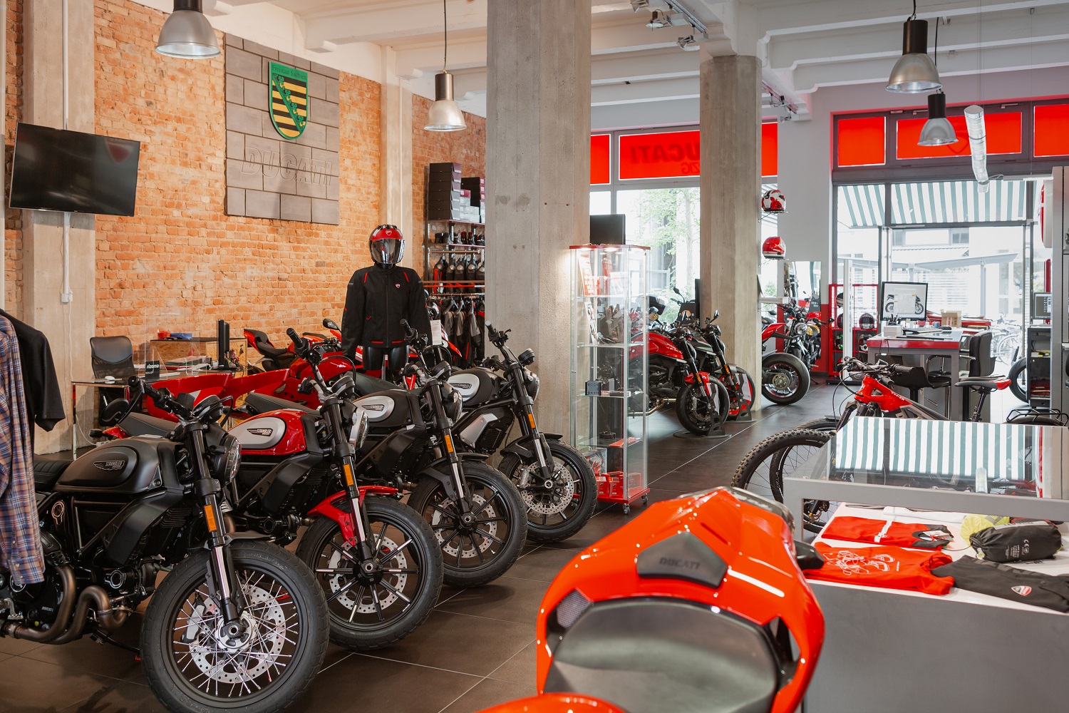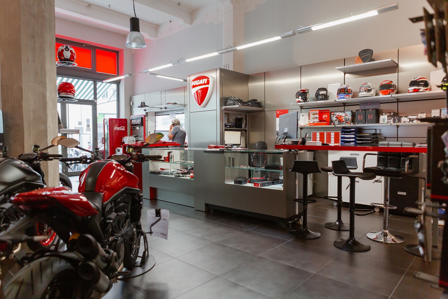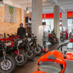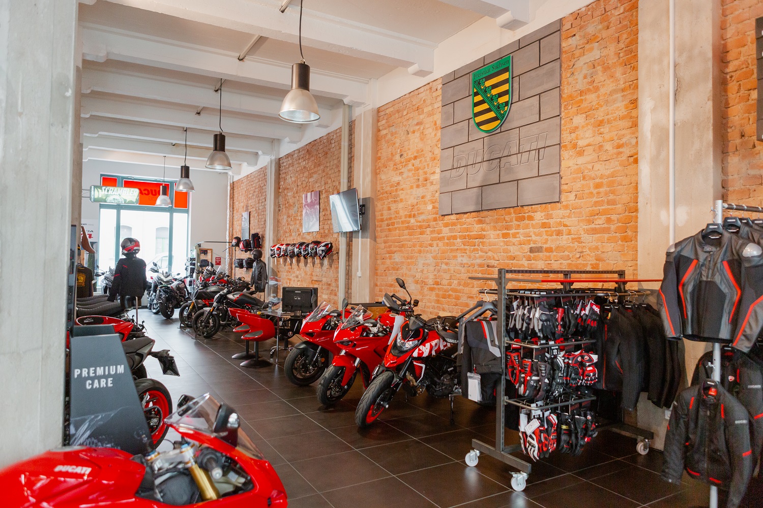Wer in eine Ducati fährt, bekommt zu seinem Motorrad die richtige Portion an Lebensgefühl und Ducatisti-Flair ganz selbstverständlich obendrauf. Denn wir lieben diese Motorräder, den unverwechselbaren Desmo-Sound, den Kult darum und einfach alles, was mit Ducati zu tun hat. Vom Neumotorrad, über spektakuläre Umbauten, exklusives Ducati-Zubehör, die richtige Bekleidung bis zum Desmo Owners Club Leipzig, in dem ihr eure Leidenschaft mit anderen Ducatisti teilen könnt. Ihr findet bei uns alles in Grün-Weiß-Rot, was mit Ducati zu tun hat. Und so werdet ihr als Ducati-Fahrer in unserem Store ein Stück Heimat finden und wir möchten tolle Gastgeber für euch sein. Mille grazie!