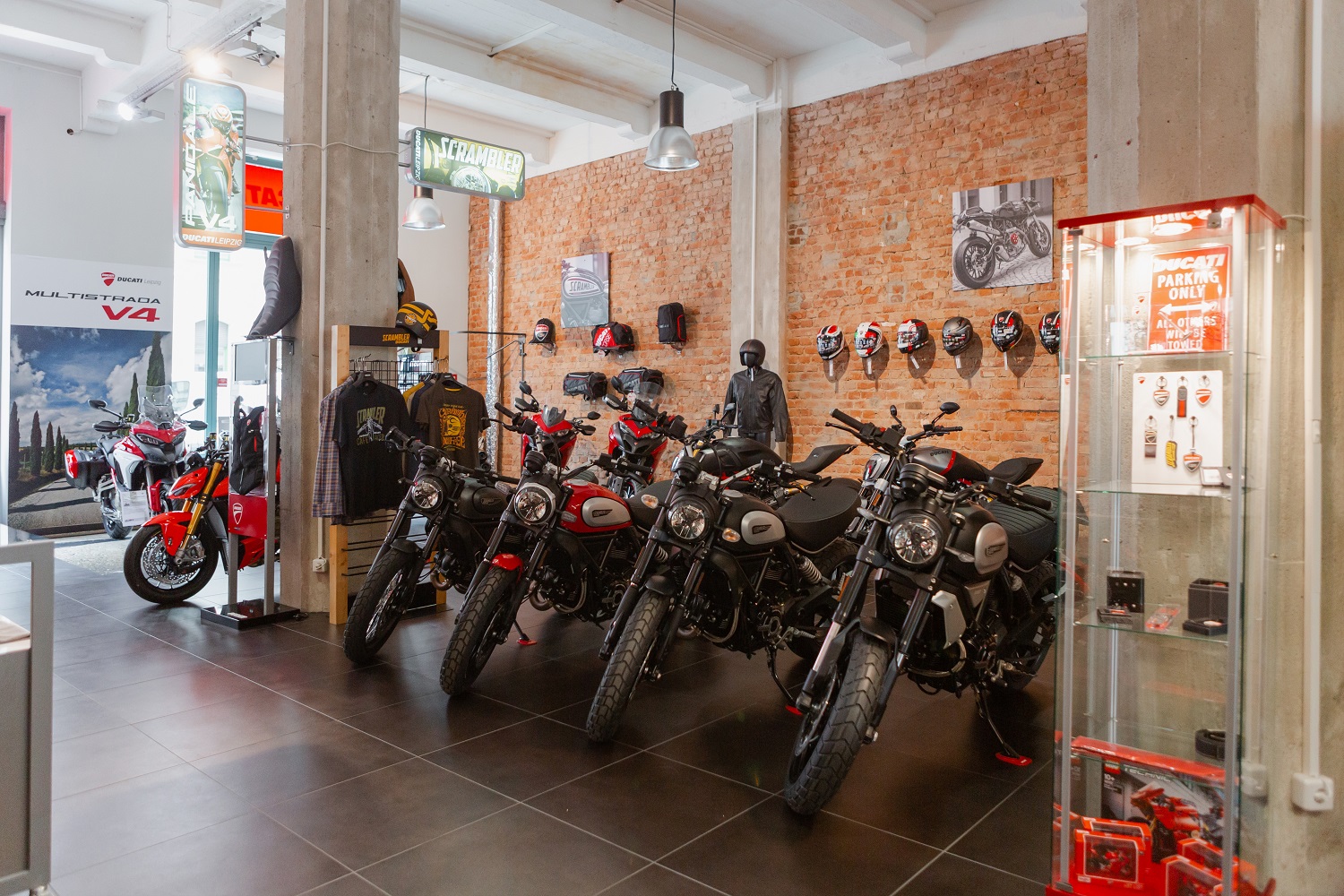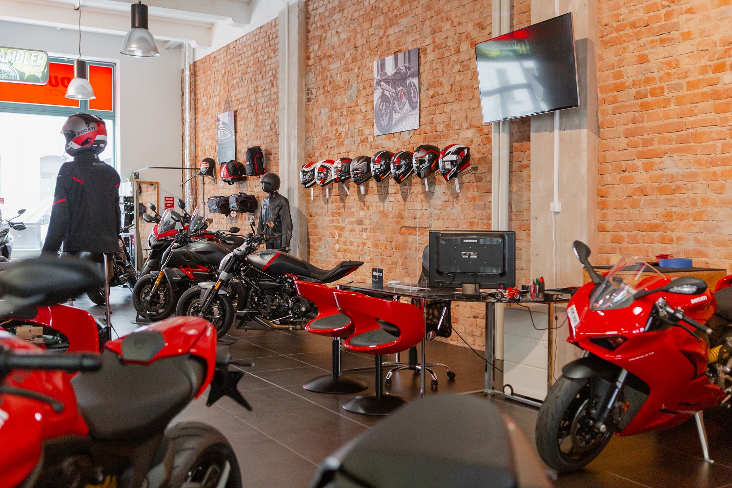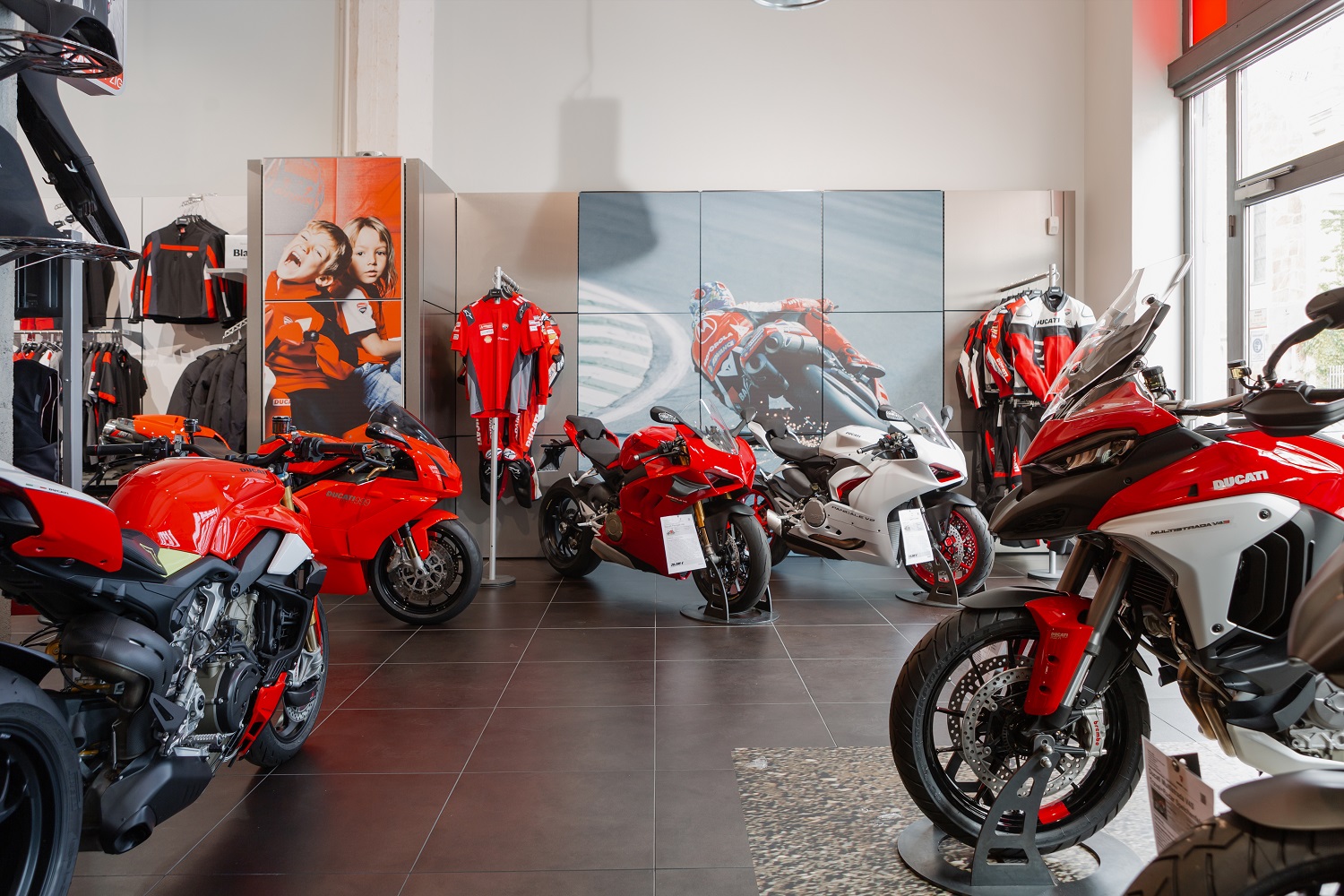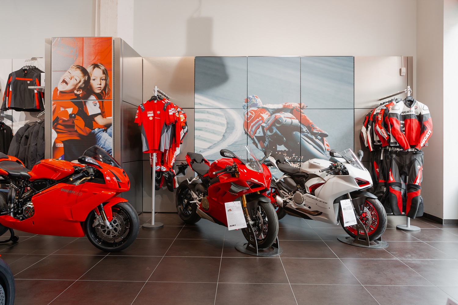 Wer in eine Ducati fährt, bekommt zu seinem Motorrad die richtige Portion an Lebensgefühl und Ducatisti-Flair ganz selbstverständlich obendrauf. Denn wir lieben diese Motorräder, den unverwechselbaren Desmo-Sound, den Kult darum und einfach alles, was mit Ducati zu tun hat. Vom Neumotorrad, über spektakuläre Umbauten, exklusives Ducati-Zubehör, die richtige Bekleidung bis zum Desmo Owners Club Leipzig, in dem ihr eure Leidenschaft mit anderen Ducatisti teilen könnt. Ihr findet bei uns alles in Grün-Weiß-Rot, was mit Ducati zu tun hat. Und so werdet ihr als Ducati-Fahrer in unserem Store ein Stück Heimat finden und wir möchten tolle Gastgeber für euch sein. Mille grazie!